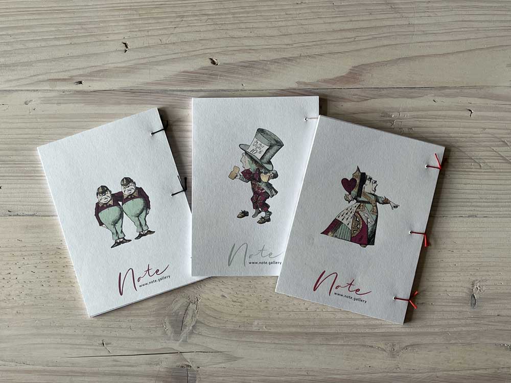 Our Alice collection is available as individual Note books or a curiouser and curiouser gift set (see below). Orders of four, or more, books will include a complimentary magnetic bookmark.
